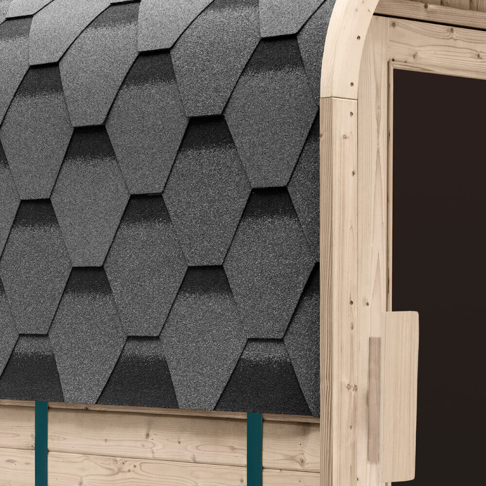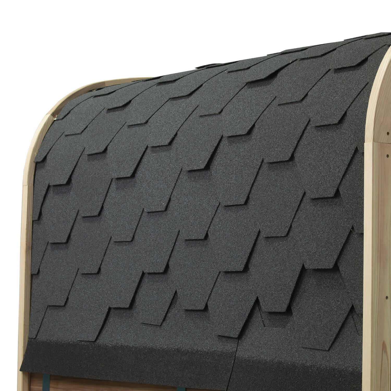 Built from premium Cedar wood, known for strength and resistance to moisture, with a sturdy bitumen felt roof and an 6mm tempered glass door, this infrared sauna is made to thrive outside while retaining its natural beauty.
