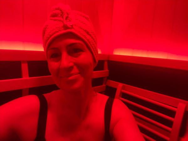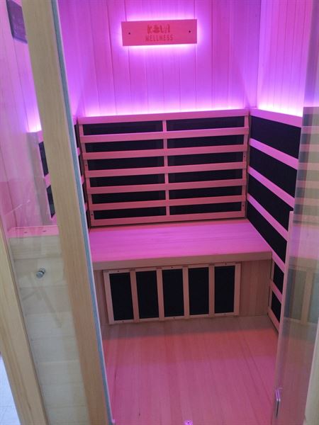 Infrared saunas don’t just heat the air around you. Instead, infrared wavelengths penetrate the body directly, creating a deeper warmth at a lower temperature.